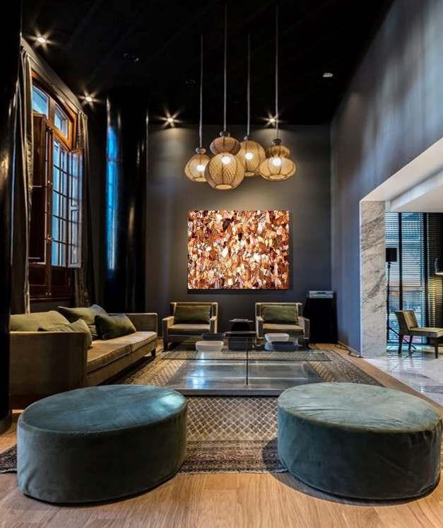Dynamic golden and deep-toned patterns that create movement and visual richness across surfaces.