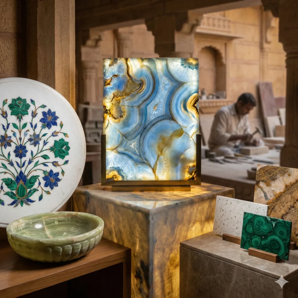 We source the finest geological wonders from across the globe, transforming raw earth into bespoke architectural elements. Our artisans combine generations of traditional skill with modern precision to create intricate marble inlays, luminous semi-precious slabs, and custom furnishings that define luxury interiors.